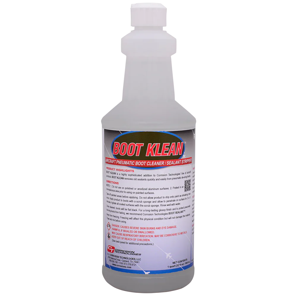Boot Klean is specifically designed to clean de-icing boots, which can then be sealed/protected by Boot Sealant.